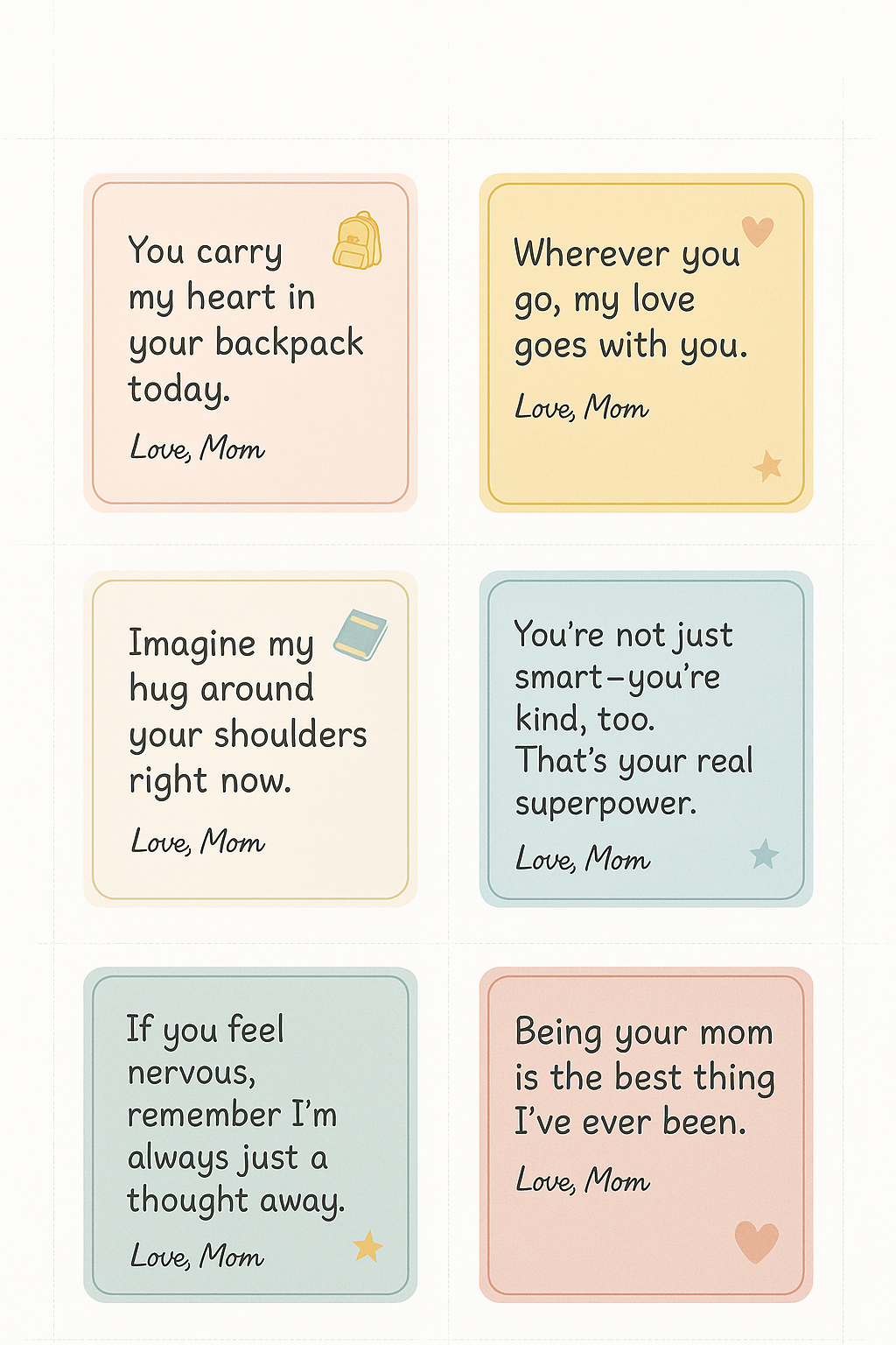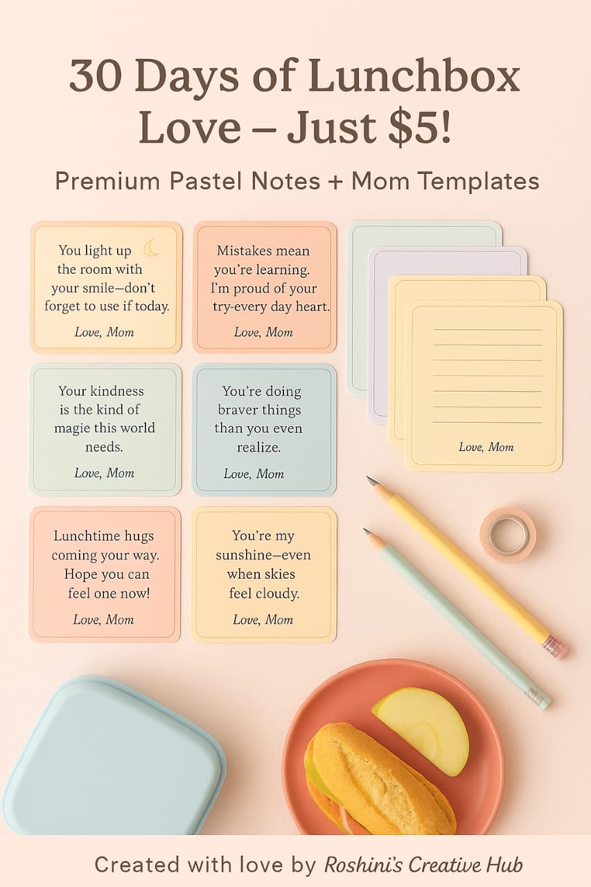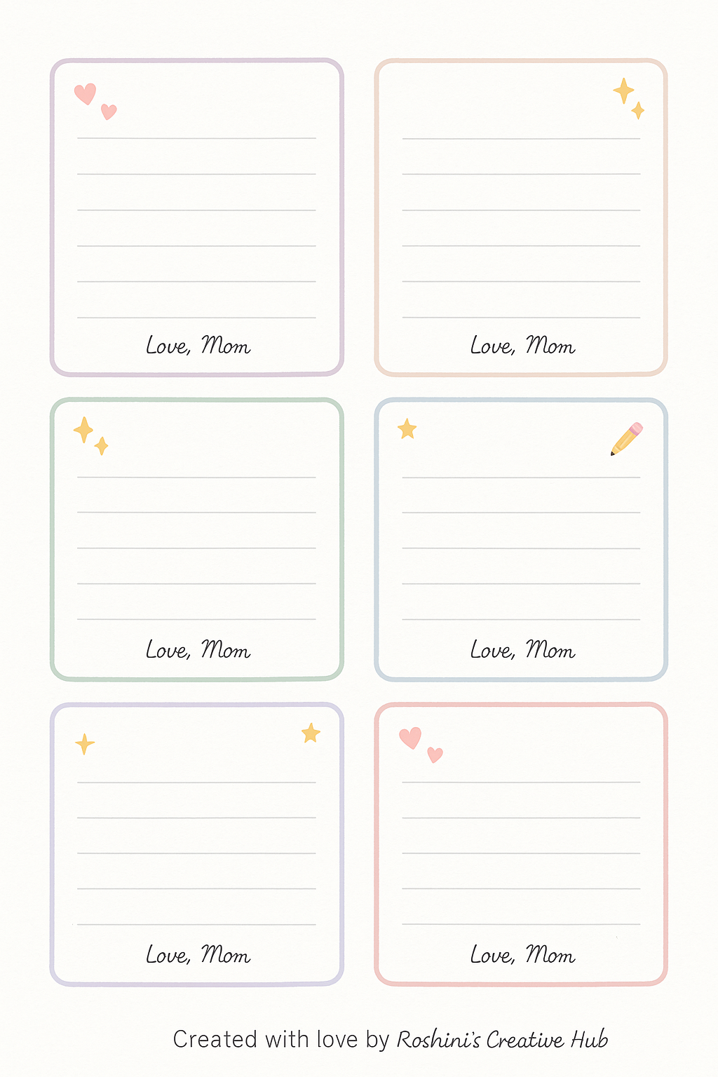 🎒 30 ready-to-use pastel notes with cheerful, kid-friendly designs.