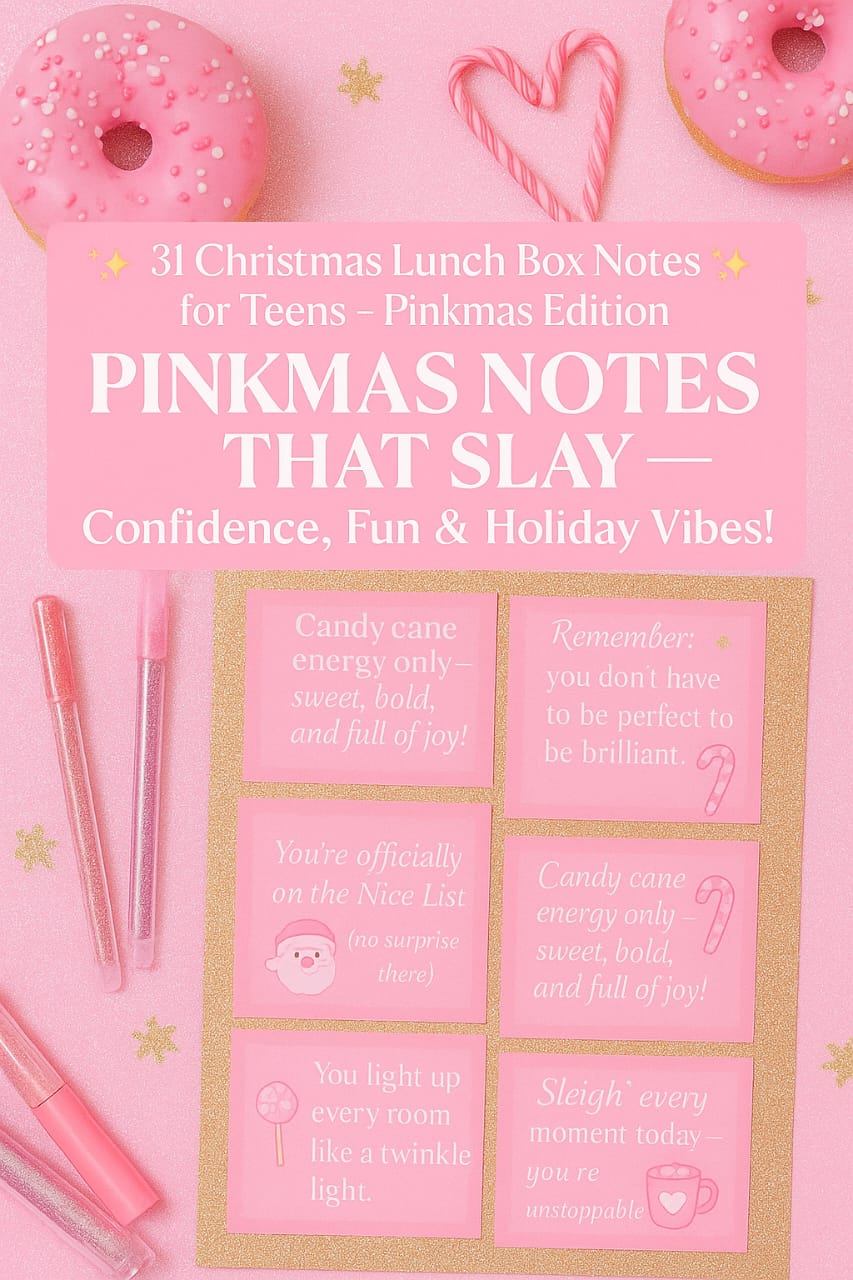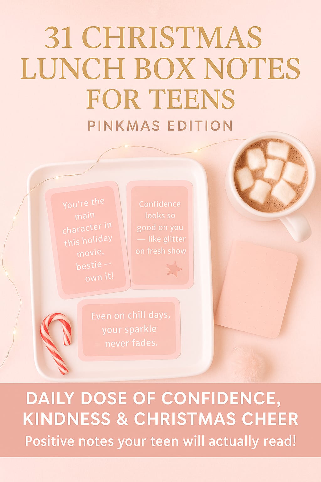 Make every December morning magical with our 31 Christmas Lunch Box Notes for Teens Printable – Pinkmas Edition! 💌
