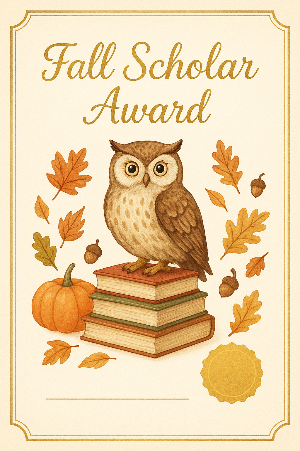 🏆 Fall Scholar Certificate – celebrate achievements with an autumn-inspired certificate.