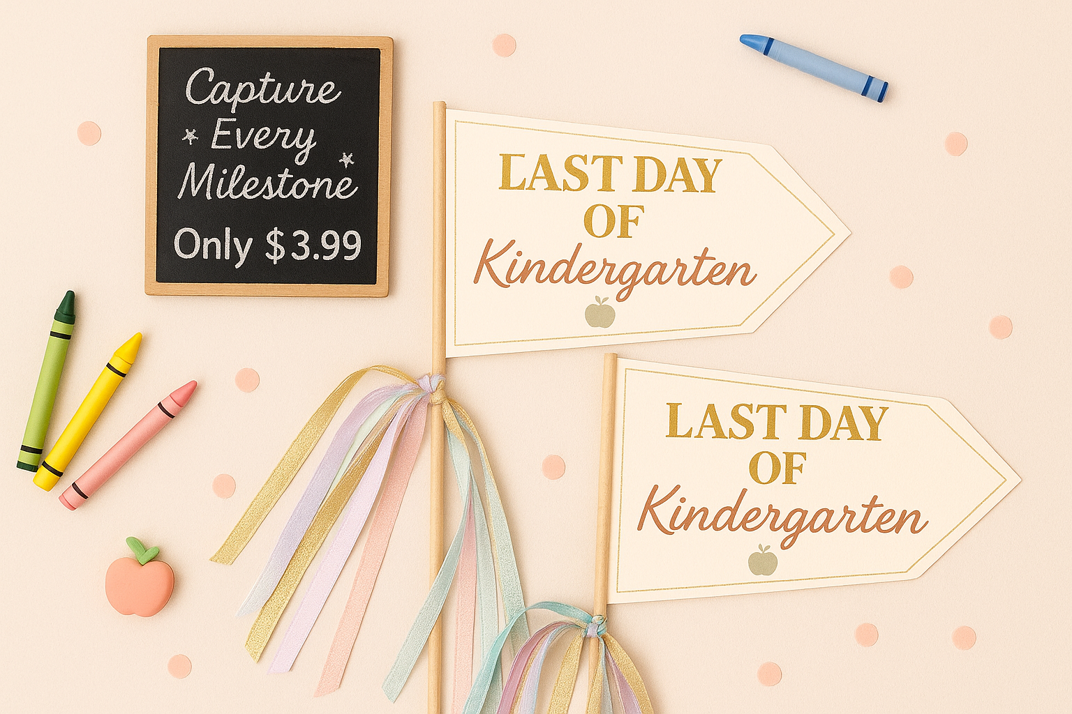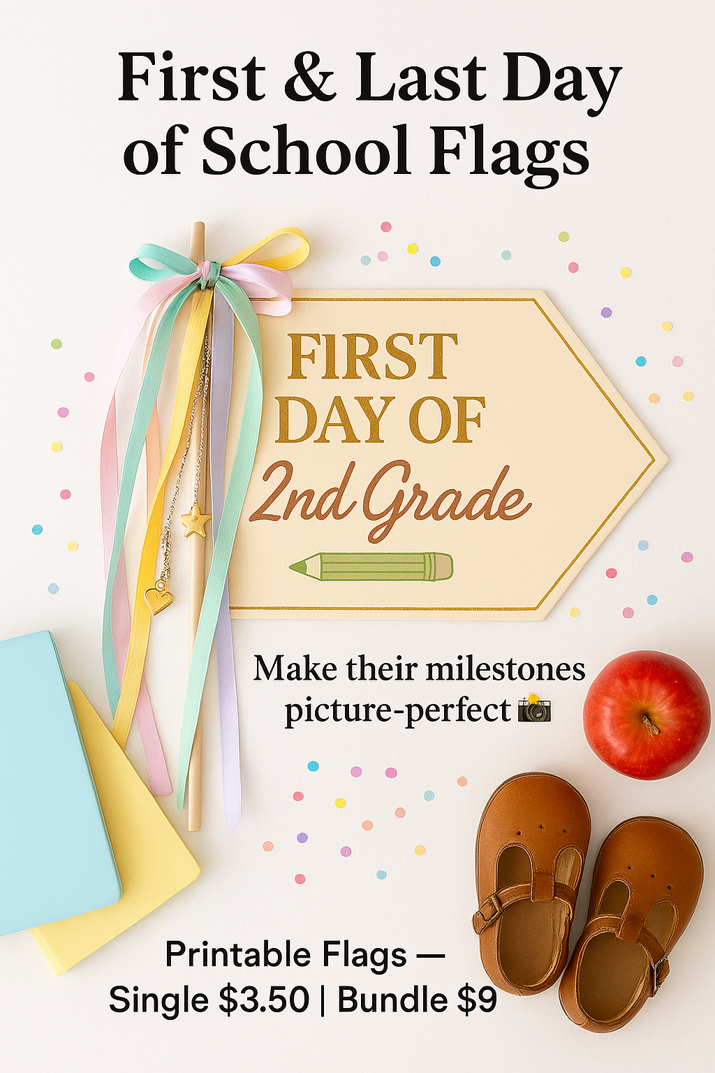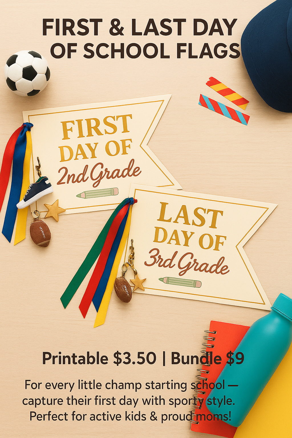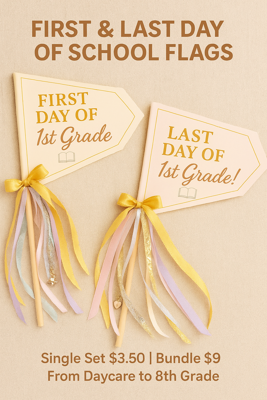 Capture the sweetest school memories with our First & Last Day of School Flag Printable, designed for children from daycare, preschool, homeschool, kindergarten, and Class 1 through Class 8.