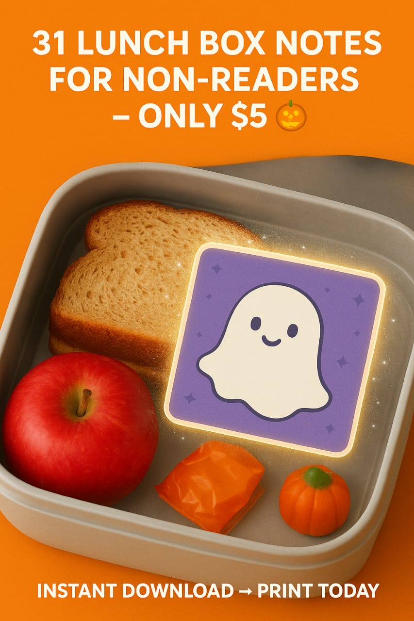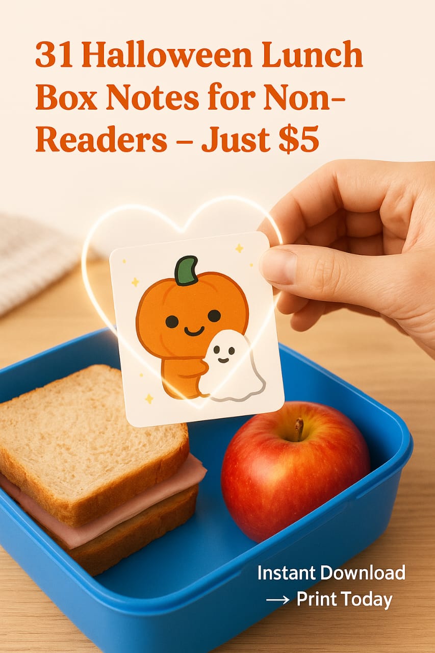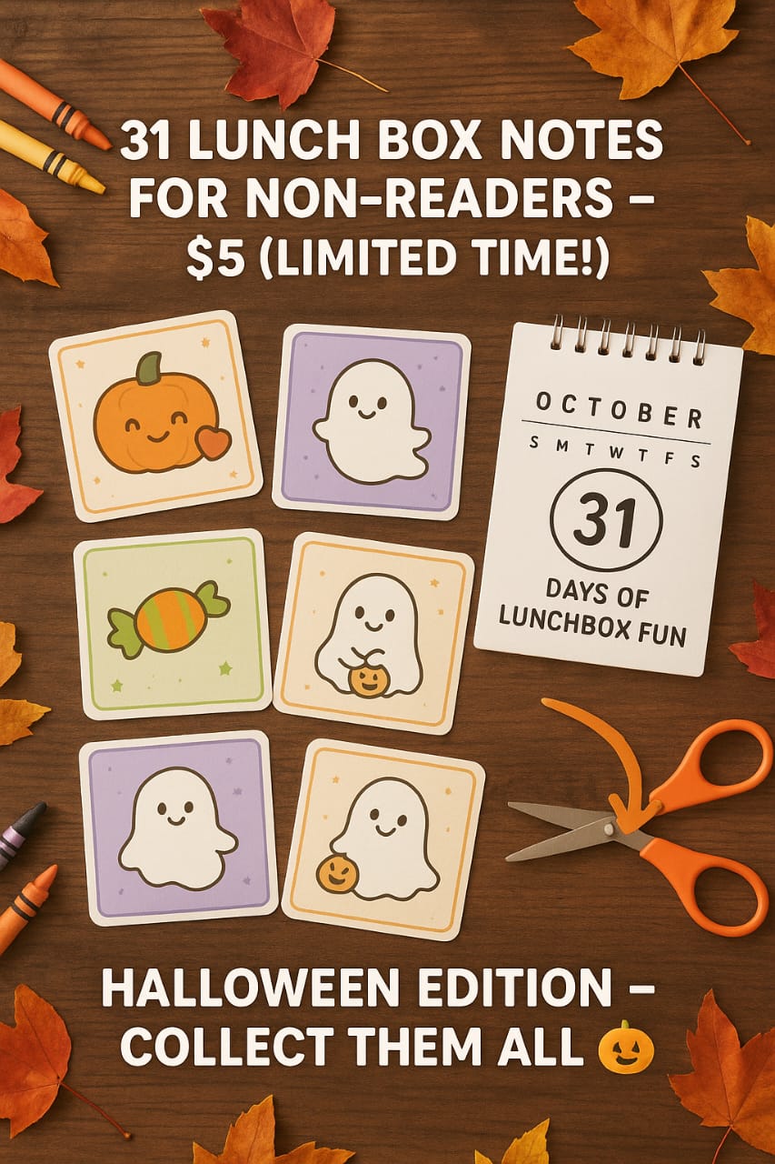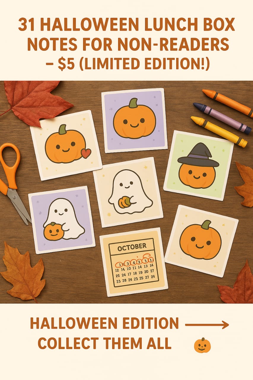 Add a spooky surprise to your childβs lunch every day with our Halloween Lunch Box Notes for Non-Readers β October Edition πβ¨. Specially designed with fun, visual Halloween themes, these notes are perfect for kids who canβt read yet but love cheerful, picture-based reminders from mom.