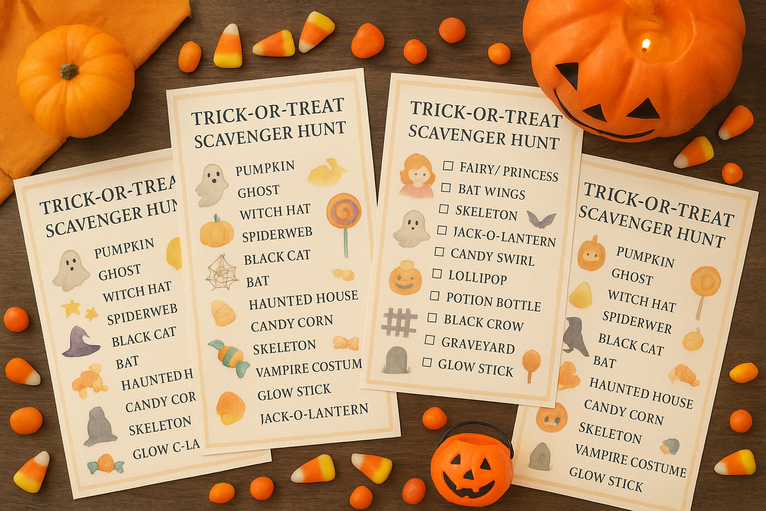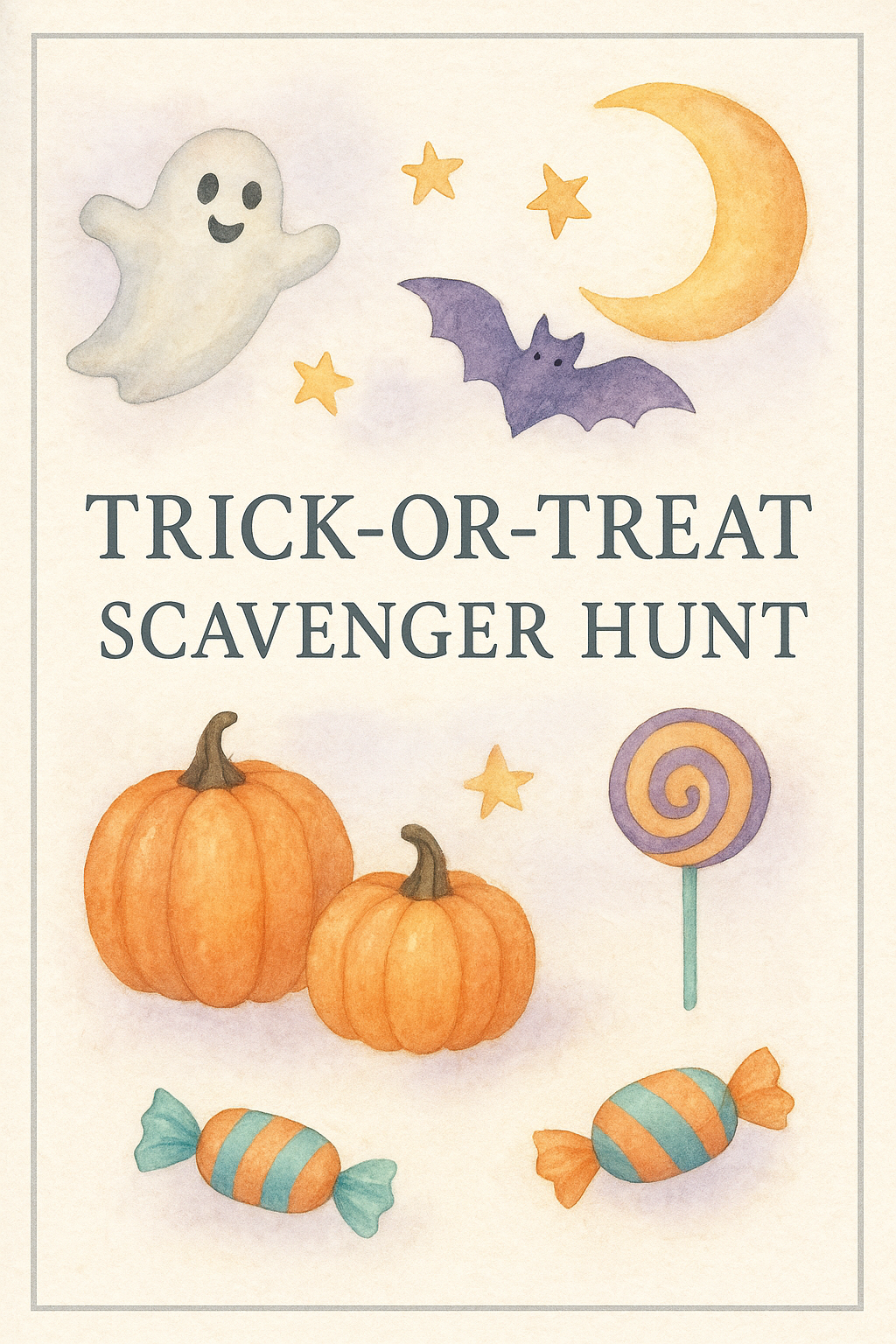 Bring extra magic to Halloween night with our premium Watercolor Trick-or-Treat Scavenger Hunt Cards! 🎃👻 Perfect for kids, families, classrooms, and neighborhood parties, this printable set includes 4 beautifully designed scavenger hunt cards featuring hand-painted watercolor illustrations of classic Halloween icons — pumpkins, ghosts, bats, candy corn, spiderwebs, haunted houses, and more.
