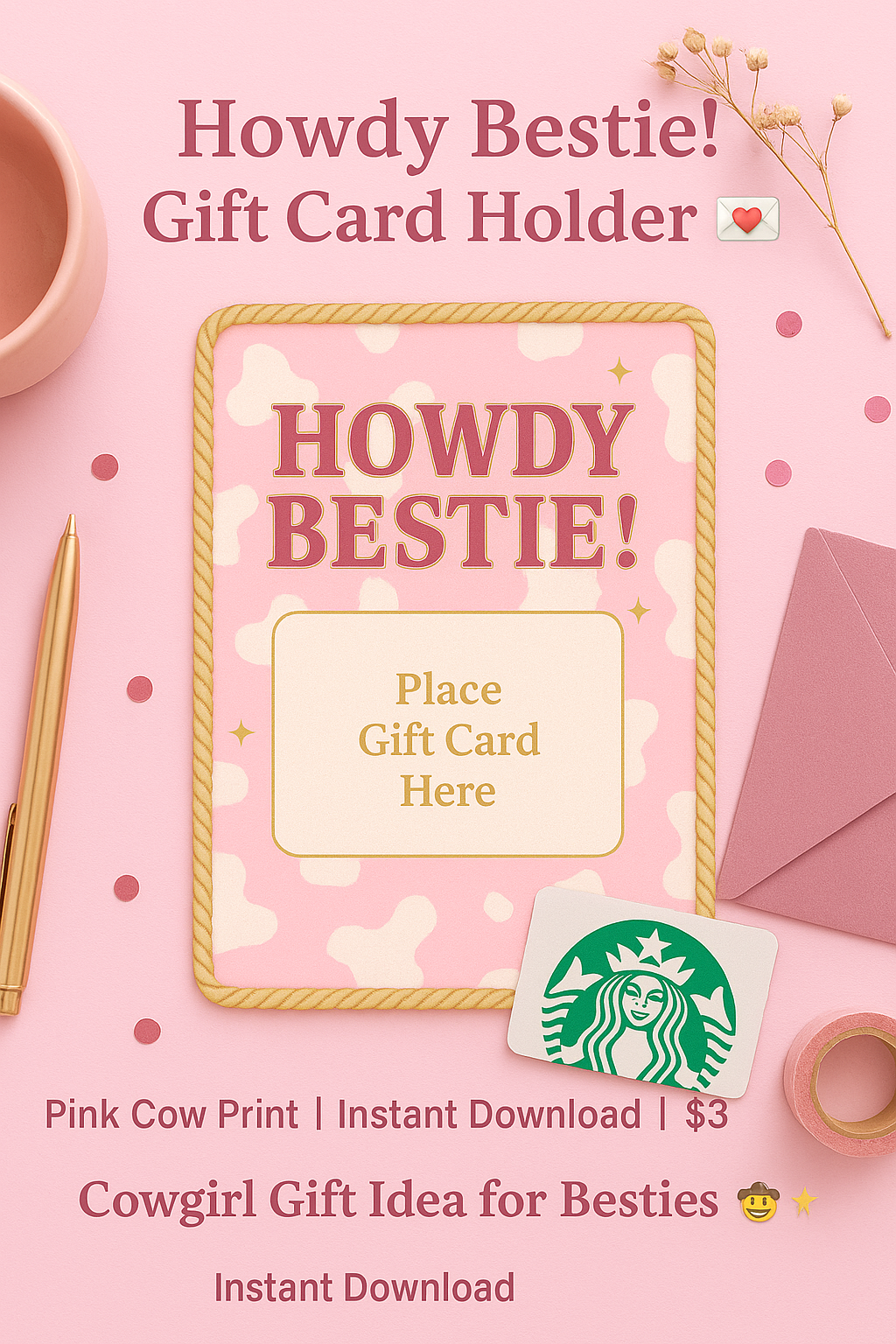 Say howdy in style! π€ β¨ Our βHowdy Bestie!β Pink Cow Print Gift Card Holder is the cutest way to wrap up any gift card β perfect for birthdays, bestie surprises, bachelorette favors, or cowgirl-themed parties!