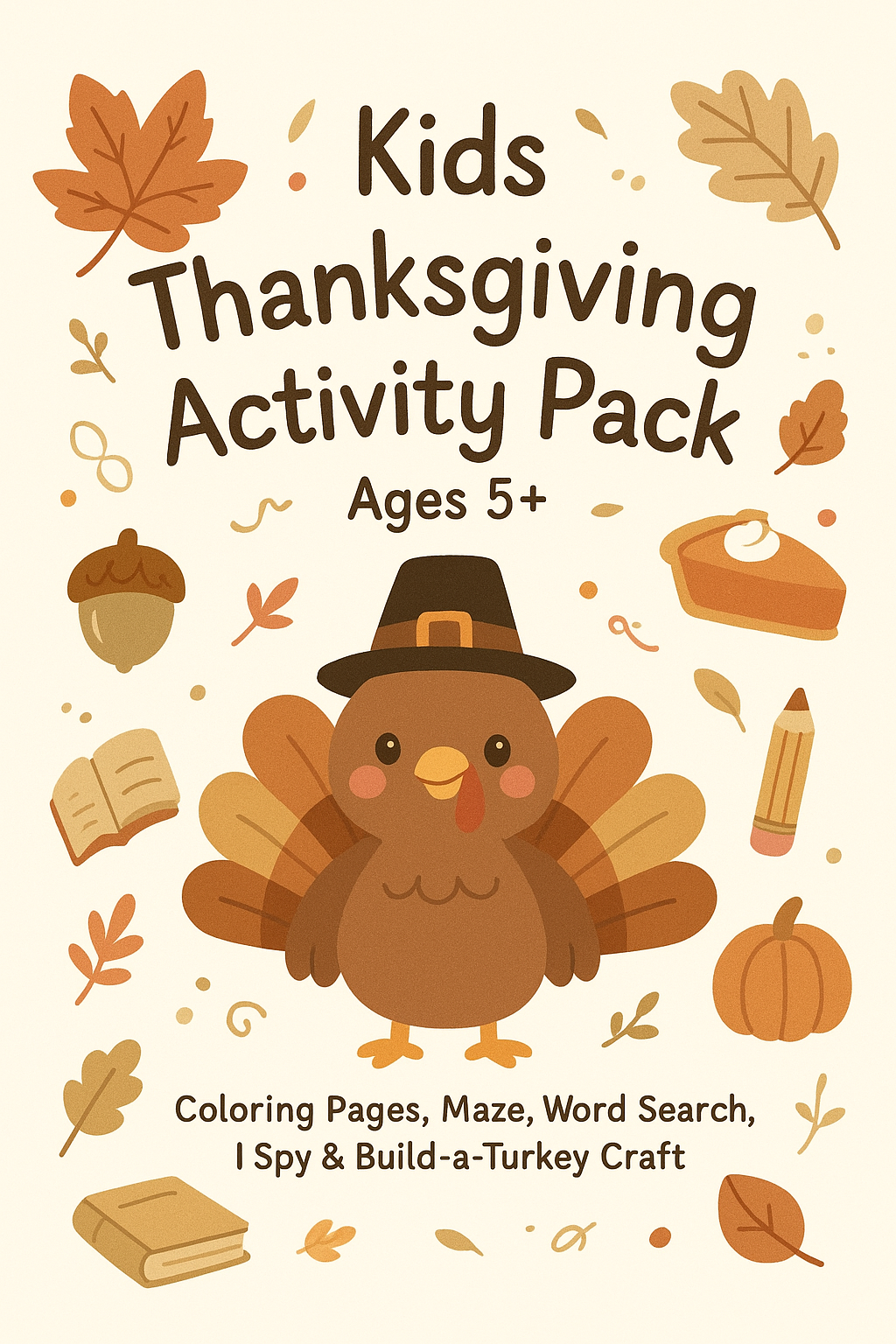 🦃 1️⃣ Cover Page – Kids Thanksgiving Activity Pack (Ages 5+)